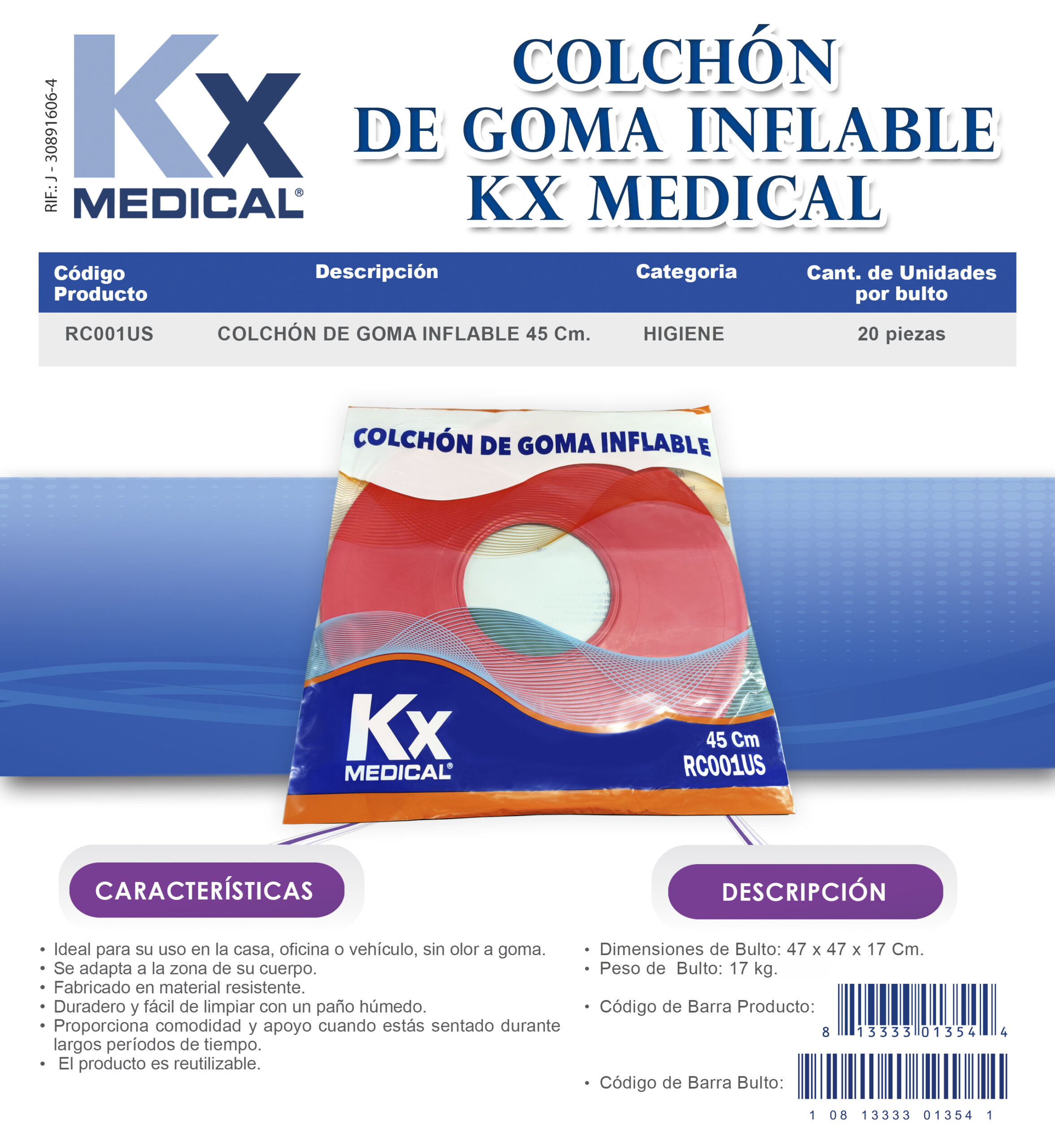 Medidas por Bulto 47x47x17 cm. Peso por Bulto 17 kg.